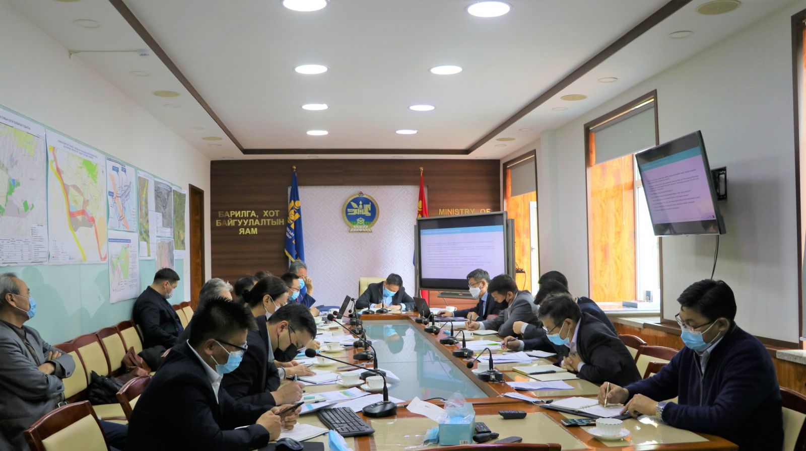 Барилга, хот байгуулалтын яам, Зам тээврийн хөгжлийн яамтай хамтарсан ажлын хэсэг өнөөдөр хуралдлаа. Энэхүү ажлын хэсэг нь Засгийн газрын 2021-2024 оны үйл ажиллагааны төлөвлөгөөнд тусгагдсан барилга, хот байгуулалт, зам, тээврийн дэд бүтэц байгуулах чиглэлээр хийгдэхээр тусгагдсан үндэсний хэмжээний томоохон төсөл, хөтөлбөрүүдийг хэрэгжүүлэхэд салбар хоорондын уялдааг хангах, нэгдсэн удирдлага, зохион байгуулалтын хүрээнд хамтарч ажиллах чиг үүрэг бүхий ажлын хэсэг юм. Ажлын хэсгийг ахалж ЗТХ-ийн дэд сайд Ж.Бат-Эрдэнэ, ажлын хэсгийн дэд даргаар БХБ-ын дэд сайд Э.Золбоо нар тэргүүлэн ажиллаж байна.
