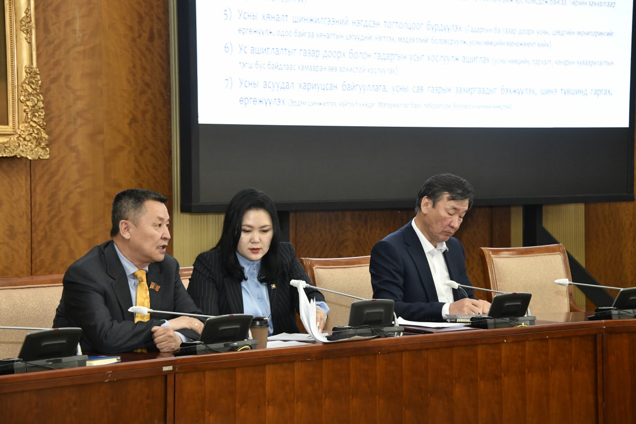 Усны тухай хуульд нэмэлт оруулах тухай хуулийн төслийн талаарх хэлэлцүүлэгт Байгаль орчин, аялал жуулчлалын яам, Уул уурхай, хүнд үйлдвэрийн яам, Усны газар болон төрийн бус байгууллагуудын төлөөлөл оролцлоо