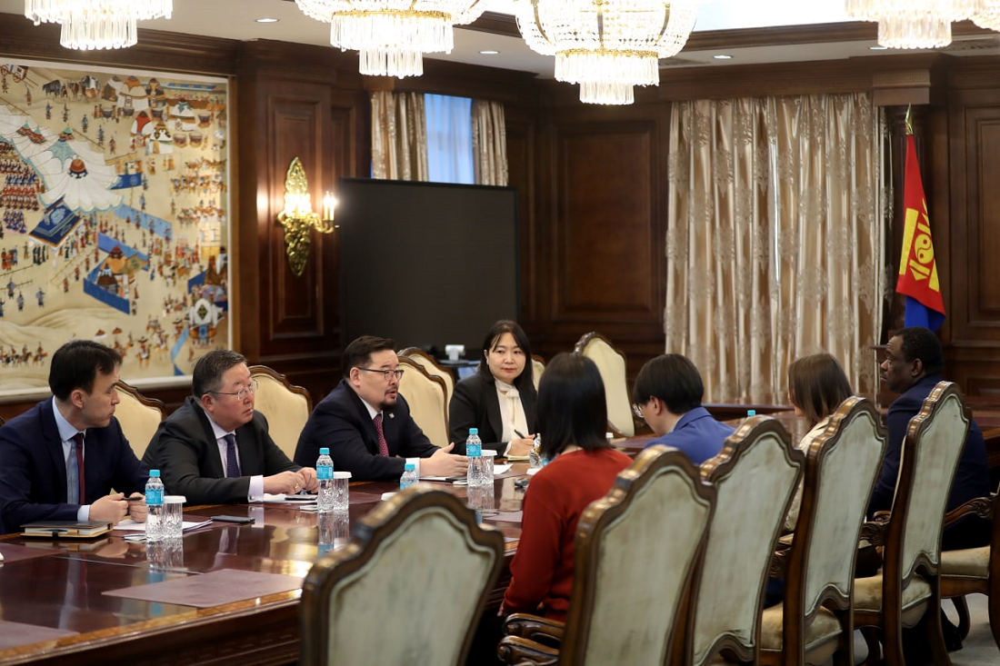 Уулзалтад НҮБ-ын Хүүхдийн сангийн Суурин төлөөлөгч Эваристе Коуасси-Комлан, НҮБ-ын Хүүхдийн Сангийн Монгол дахь Шадар Суурин төлөөлөгч Аяако Каино, Улсын Их Хурлын даргын зөвлөх О.Номинчимэг, УИХ-ын Тамгын газрын Гадаад харилцааны хэлтсийн дарга Ц.Жамбалдорж болон албаны бусад хүмүүс байлцав.
