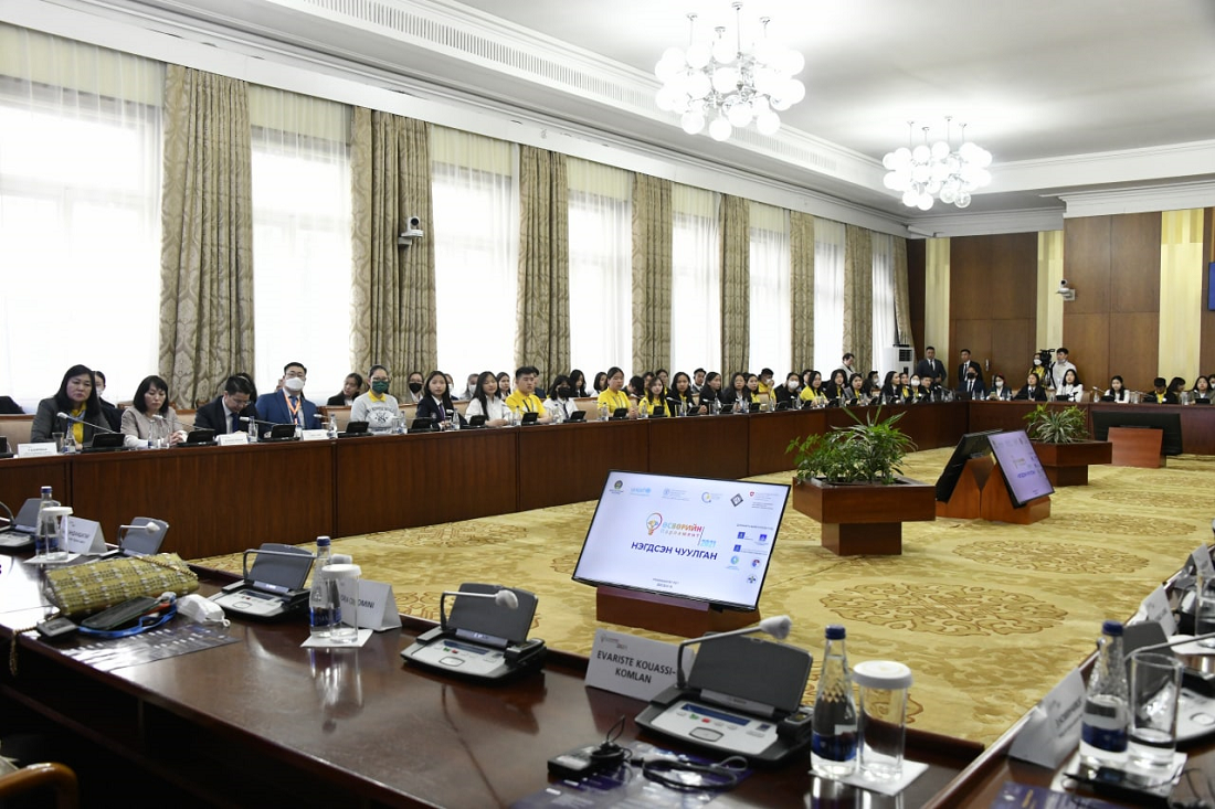 Өнөөдөр (2022.05.12) “Өсвөрийн парламент-2021” хөтөлбөрийн хаалтын ажиллагааны чуулга уулзалтыг Төрийн ордонд зохион байгууллаа.