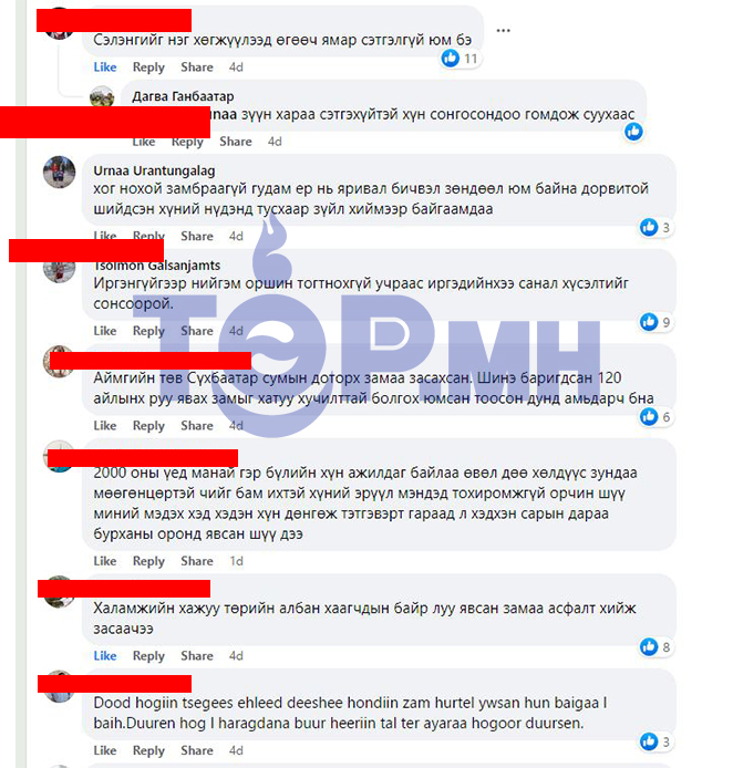 Аймгийн иргэдийн саналыг авч нэн шаардлагатай хийх ажлаа эрэмбэлдэг баймаар. Гэтэл Аймгийн хэдэн дарга нар, ИТХ-ын төлөөлөгчид өөрсдийн тухлах байшингаа засаж, янзлах нь нэн чухал хэмээн хэлж байгаа нь үнэхээр Сэлэнгэ аймгийг хөгжүүлэх сэтгэл тэдэнд дутаж байгааг илтгэнэ.