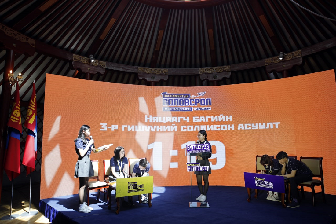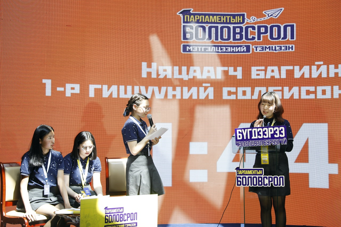 Энэ үеэр Улсын Их Хурлын Ерөнхий нарийн бичгийн дарга Л.Өлзийсайхан Улсын Их Хурлын 2019-2024 оны стратеги төлөвлөгөөнд тусгасан “Парламентын боловсрол” хөтөлбөрийн хүрээнд сурагчдын дунд илтгэх ур чадвар, мэтгэлцээний тэмцээнийг амжилттай зохион байгууллаа. Тэмцээнд оролцсон хүүхдүүд болон тэднийг бэлтгэсэн багш нар маш идэвхтэй байлаа. Ур чадварын хувьд ч сайн байна. Энэ удаагийн мэтгэлцээнд 64 баг оролцуулахаар зар тавихад тэр өдөртөө 64 баг шууд бүрдсэн. Энэ нь хүүхдүүд ямар ч мэтгэлцээнд бэлтгэлтэй байгааг харуулж буй хэрэг. Хот, хөдөөгийн олон сургуульд мэтгэлцээний клубүүд ажилладаг юм байна. Эдгээр клуб, сургалтын үйл ажиллагааг Улсын Их Хурлын Тамгын газраас дэмжиж ажиллана. Мэтгэлцээнд оролцож буй хүүхдүүдээс харахад бидний ирээдүй үгээ хэлэх, үзэл бодлоо илэрхийлэх эрхээ мэддэг, идэвхтэй иргэд болон төлөвшиж буй юм байна” хэмээн дүгнэж хэлэв.