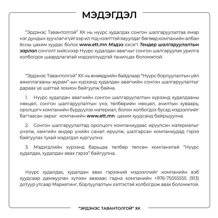 Эрдэнэс Тавантолгой ХК МЭДЭГДЭЛ гаргалаа