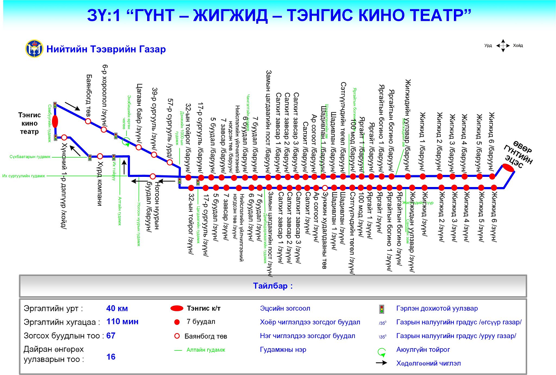 ЗҮ:1 “Гүнт-Жигжид-Тэнгис кино театр” чиглэлийн автобус /35 минут тутамд/