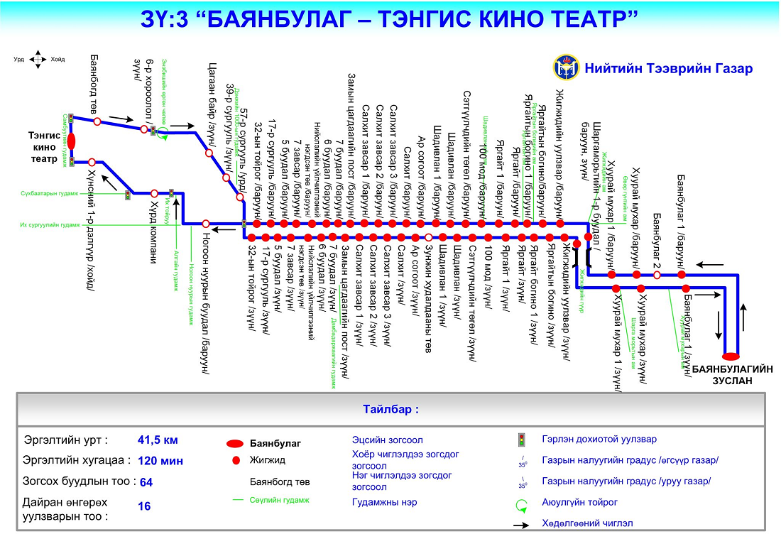 ЗҮ:3 “Баянбулаг-Тэнгис кино театр” чиглэл /2 цаг тутамд/