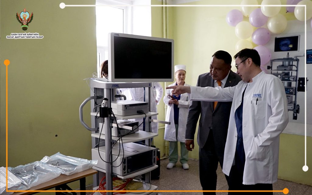 Бөөр шээсний доод замын дурангийн багаж аппарат тоног төхөөрөмжийг ЭМЯ-ны санхүүжилтээр 15-аймагт нийлүүлсэн. Засаг дарга Д.Бауыржан, орлогч дарга С.Хонаев нар өнөөдөр /2022.06.08/ аймгийн Нэгдсэн эмнэлгийн Мэс заслын тасагт тус дурангийн аппаратыг мэс ажилбарын багажийн хамт хүлээлгэн өгөх нээлтийн үйл ажиллагаанд оролцож, мэндчилгээ дэвшүүлсэн байна.