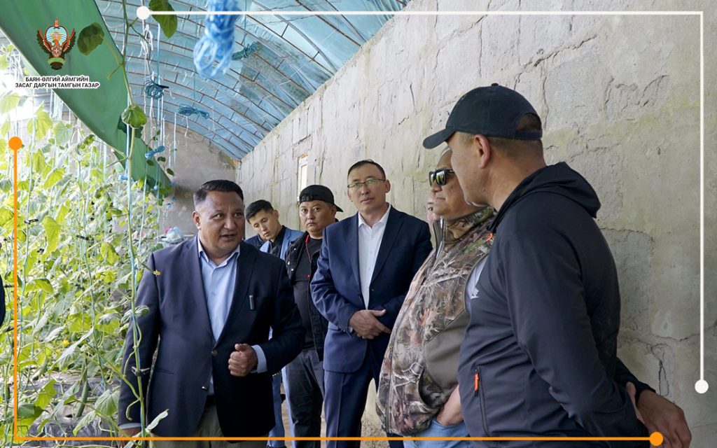 Ажлын хэсэг нэн тэргүүнд тус сумдад байрладаг өвлийн хүлэмжийн аж ахуйн үйл ажиллагаатай танилцлаа. Бидний өдөр тутмын хэрэглээ, амин дэмийн эх үүсвэр болсон хүнсний нарийн ногоо тарих ажилд бие сэтгэлээ зориулан яваа Х.Хуанышийн өвлийн хүлэмжийн үйл ажиллагаатай танилцаж, тулгамдаж буй асуудлыг сонсож, хүнс, хөдөө аж ахуйн гаралтай хөнгөлөлттэй зээлийн тухай мэдээлэл өгч ажиллав.