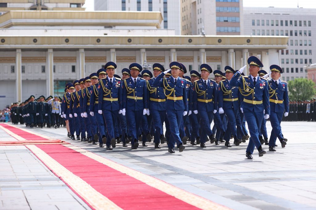 Монгол Улсын Ерөнхийлөгч, Зэвсэгт хүчний Ерөнхий командлагч Ухнаагийн Хүрэлсүх шилдэг төгсөгчдөд энгэрийн тэмдэг, диплом гардуулсныхаа дараа баяр хүргэж үг хэллээ.