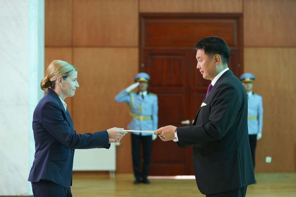 Австралийн Холбооны Улсаас Монгол Улсад суух Онц бөгөөд Бүрэн эрхт Элчин сайд Кэти Смит Монгол Улсын Ерөнхийлөгч Ухнаагийн Хүрэлсүхэд Итгэмжлэх жуух бичгээ өргөн барилаа.