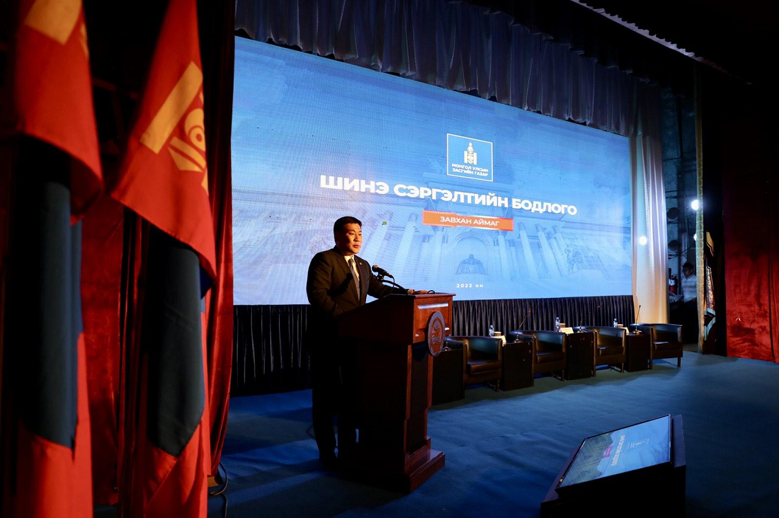 Ерөнхий сайд Л.Оюун-Эрдэнэ Засгийн газраас хэрэгжүүлж буй бодлого, үйл ажиллагаа, цар тахал, улс орны эдийн засаг, дэлхий дахины геополитикийн нөхцөл байдал, үүнээс үүдсэн хүндрэлүүд, авч буй арга хэмжээний талаар ярьж “Шинэ сэргэлтийн бодлого”-ын хүрээнд хэрэгжүүлж буй томоохон төсөл хөтөлбөрүүдийн талаар танилцуулан, авилга, хүнд суртлын эсрэг тэмцэл, ҮХНӨ хийх хэрэгцээ шаардлага, Завхан аймгийн хөгжлийн талаар ярилцлаа.
