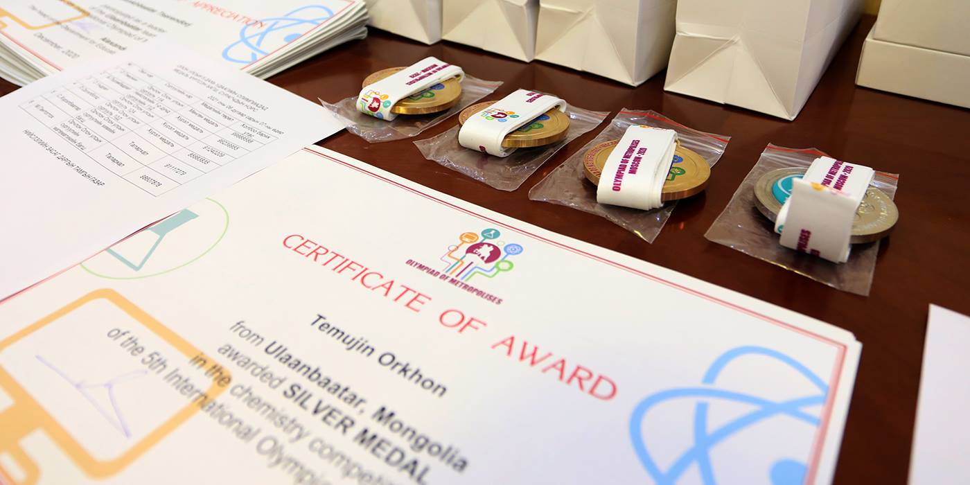 ОХУ-ын Москва хотын Засгийн газраас жил бүр зохион байгуулдаг Дэлхийн хотуудын олон улсын тав дахь удаагийн олимпиад цар тахлын улмаас өнгөрсөн 2020 оны арванхоёрдугаар сарын 19-22-ны хооронд цахимаар зохион байгуулагдсан. Тус олимпиадад 28 улсын 34 хотоос 280 орчим сурагч оролцжээ. Манай улсаас “Орчлон”, 1-р дунд сургуулийн сурагчид хими, физик, математик, мэдээлэл зүйн төрөлд амжилттай оролцож, мөнгө, хүрэл медаль хүртэж, өнөөдөр шагналаа гардан авлаа.