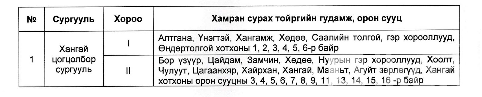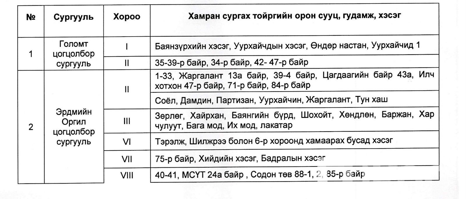 Энэхүү батлагдсан хамран сургах тойргийн дагуу нэгдүгээр ангид элсэн суралцагчдын элсэлтийг зохион байгуулахыг ЕБС-уудын захирлуудад үүрэг болгосон байна.