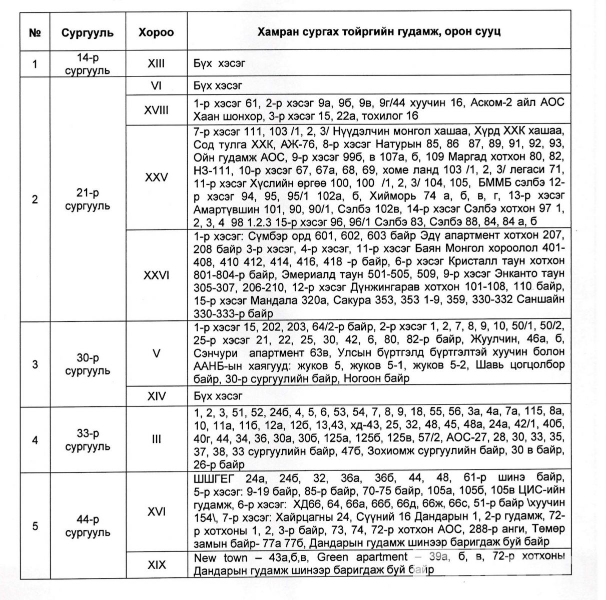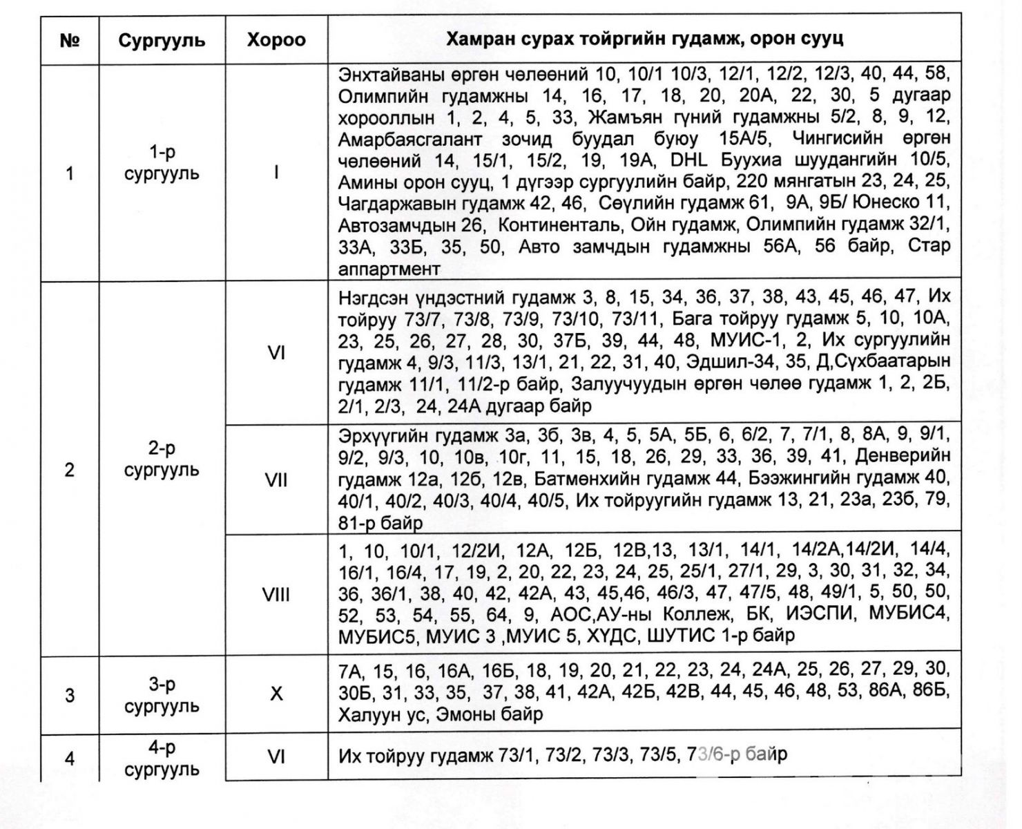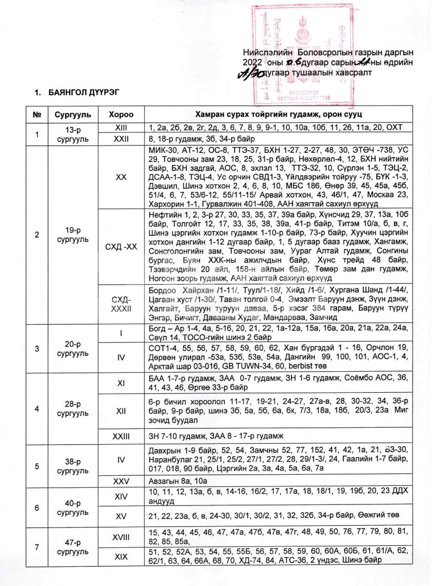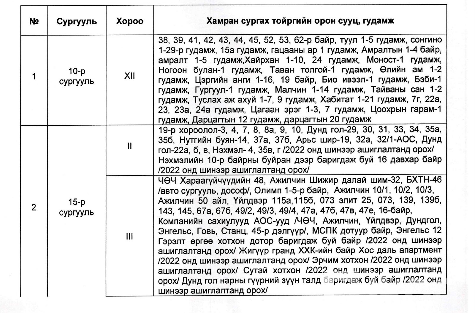 Нийслэлийн Боловсролын Газраас нийслэлийн ерөнхий боловсролын сургуулиудын 2022-2023 оны хичээлийн жилийн хамран сургах тойргийг баталжээ.