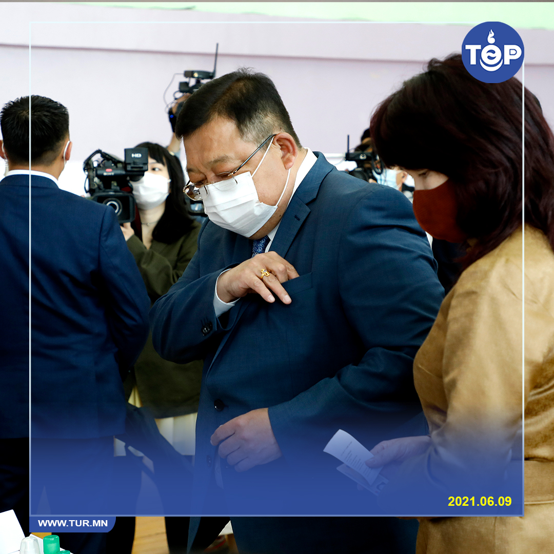 Монгол Улсын Ерөнхийлөгчийн сонгуульд Ардчилсан намаас нэр дэвшигч С.Эрдэнэ БГД-ийн 20 дугаар сургуулийн санал авах байранд саналаа өглөө