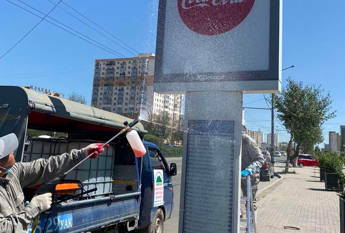 Хотын төвийн болон хүн ихээр цугладаг байршлын автобусны буудлуудыг цэвэрлэх ажлыг мэргэжлийн тусгай зөвшөөрөлтэй зургаан байгууллагын долоон бригад гүйцэтгэж байна.