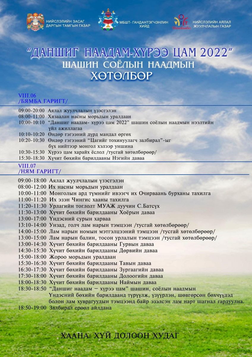 Түүнчлэн манай улсыг зорин ирж буй нэг жуулчин дунджаар 2500 ам.долларыг зарцуулдаг гэсэн тооцоо бий. Тиймээс энэхүү наадам нь ковидын жилүүдэд хүндхэн байдалд орсон аялал жуулчлалын байгууллагуудыг дэмжих ач холбогдолтой. “Даншиг наадам-Хүрээ цам 2022” шашин соёлын наадмын үеэр хэвлэл, мэдээллийн байгууллагынханд зориулж, Пресс центр ажиллуулах юм.