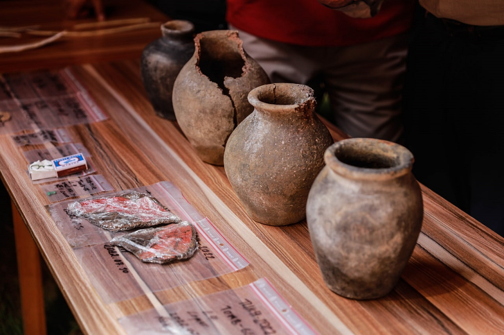 Мөн тэрбээр, Тамирын улаан хошуу дахь Хүннүгийн үеийн оршуулгын цогцолборын онцлог нь ваар сав ихээр илэрдэг явдал. Нэг булшнаас дунджаар дөрвөн ваар сав олддог бөгөөд Хүннүгийн дурсгалаас олдож байгаагүй таван төрлийн шавар, сав суулга илэрсэн нь уг дурсгалын онцгой байр суурийг харуулдаг. Түүнчлэн судалгааны өндөр ач холбогдолтой олон олдвор, хэрэглэгдэхүүн илэрсний дотор 13 дугаар булшнаас боловсруулж нүхэлсэн чонын шагай, хэлхээтэй зооснууд, гоёл чимэглэлийн хээ, чимэглэлтэй мөнгө, алтан ялтсууд, алтан ээмэг, 17 дугаар булшнаас бүрэн тоног хэрэгсэлтэй эмээл, төмөр бүүрэг, хазаар, амгай зуузай зэрэг гарсан байдаг. Бидний судалгааны гол зорилго нь Хүннүгийн үеийн овгийн бүрэлдэхүүн бүтцийг судлах, генетикийн судалгаа хийхэд чиглэдэг гэдгийг онцлон тэмдэглэж байв.