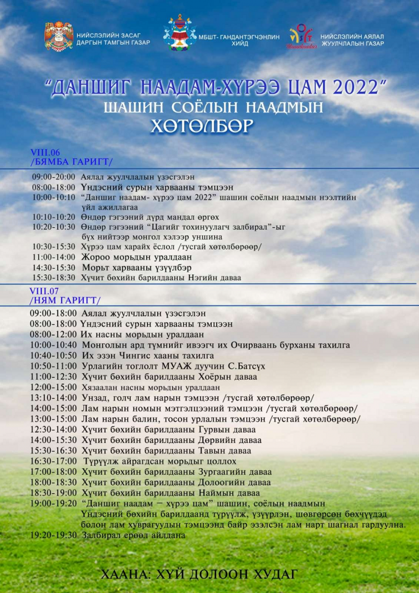 “Даншиг наадам- Хүрээ цам 2022”-ын шинэчилсэн хөтөлбөр