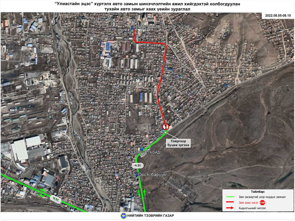 - Ч:32А "Улиастай - Офицеруудын ордон" чиглэл дээрх хугацаанд түр зогсоно.