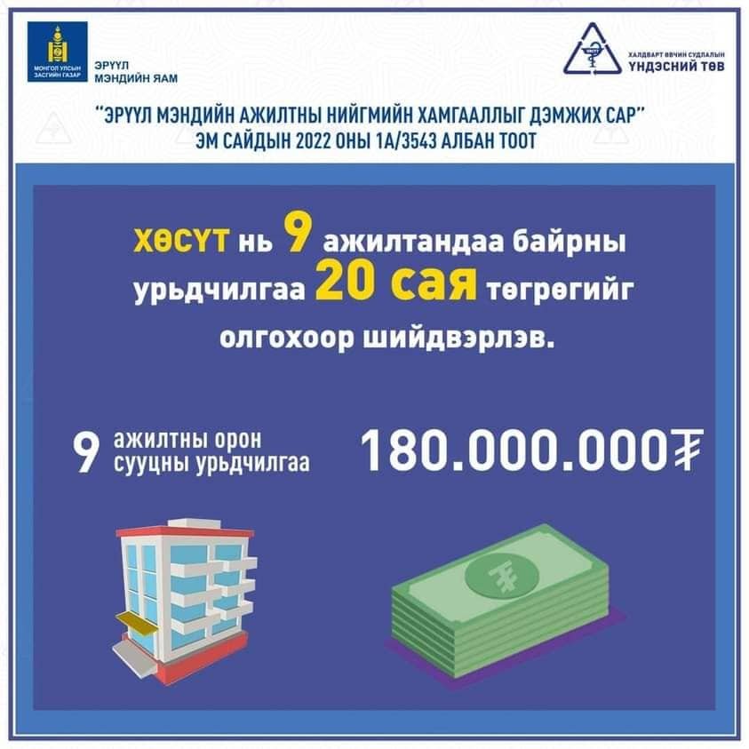 Тодруулбал, есөн ажилтандаа байрны урьдчилгаа болох 20 сая төгрөгийг олгохоор шийдвэрлэсэн байна.