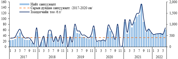 Харин энэ оны эхний 7 сард нийт 355 орчим тэрбум төгрөгийн хөнгөлөлттэй хүүтэй ипотекийн зээлийг 4.5 мянган өрхөд Монголбанк болон банкуудын эх үүсвэрээр олгоод байна. Мөн 2022 оны 8 дугаар сард 71.7 тэрбум төгрөгийн хөтөлбөрийн зээлийг олгохоор ажиллаж байна.