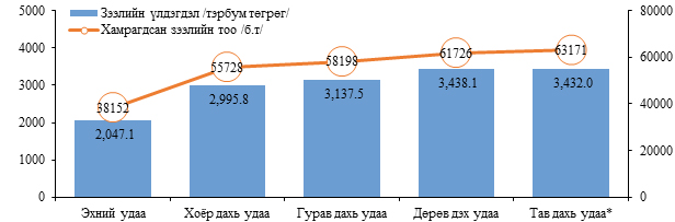 Цар тахлын хуулийн дагуу хөтөлбөрийн зээлийн эргэн төлөлтийг хүү хуримтлуулж тооцохгүй нөхцөлөөр 2020 оны 4 дүгээр сараас 2022 оныг дуустал 5 удаа хойшлуулсан (Дүрслэл 2). Сүүлийн буюу 5 дахь удаагийн төлбөр хойшлуулалтаар 3.4 их наяд гаруй төгрөгийн зээлийн үлдэгдэлтэй 63,171 зээлдэгчийн хүсэлтийг үндэслэн төлбөрийг хүү хуримтлуулж тооцохгүй нөхцөлөөр хойшлууллаа.