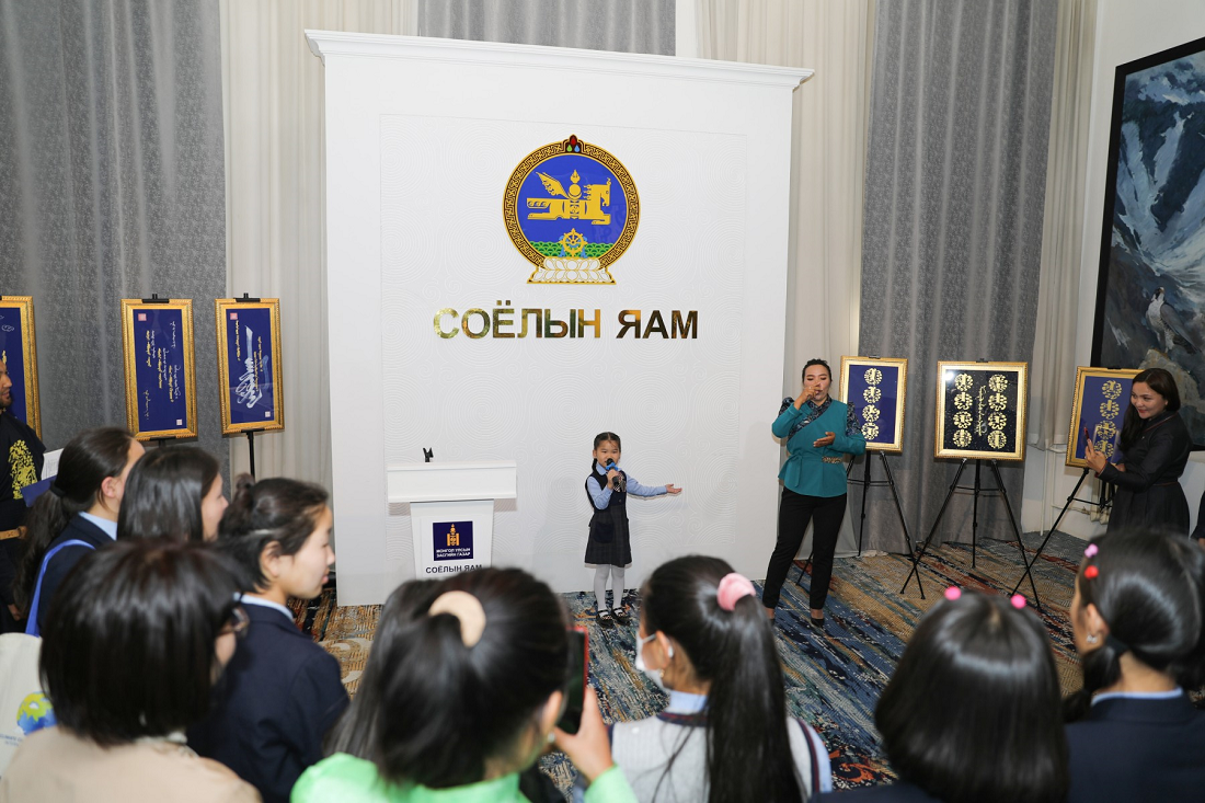 Мөн үндэсний соёлын дархлаат ирээдүйн иргэдээ бэлдэхийн тулд залуу үеийнхэндээ зөв үлгэр дуурайлал болж байгаа Хөвсгөл аймгийн Тосонцэнгэл сумын ЕБС-ийн 12Б ангийн сурагч Ү.Энхжин, 3А ангийн сурагч Ү.Эмүжин нарын бүтээлийн үзэсгэлэнг Соёлын яам дэмжин гаргаж байна.