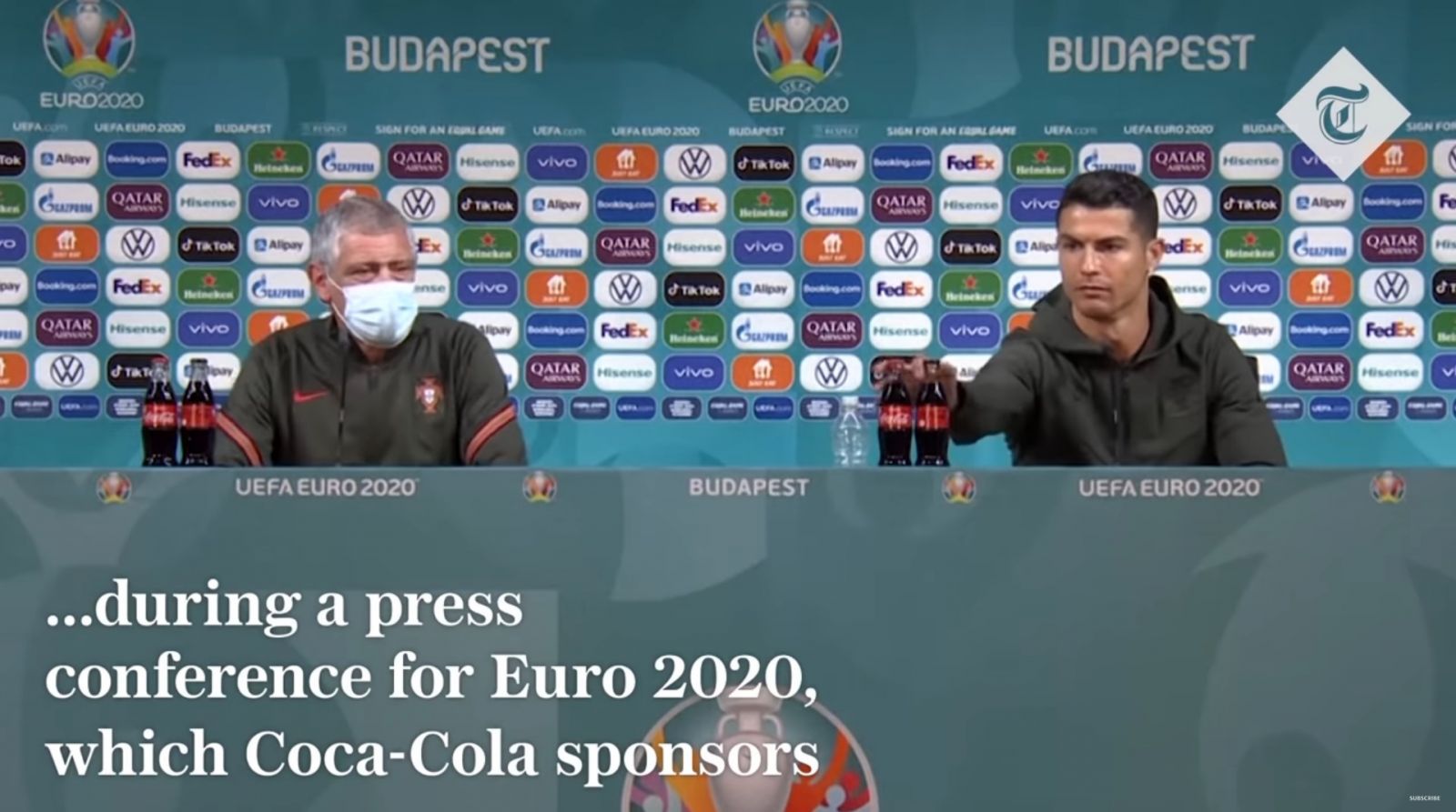Хөлбөмбөгийн Европын аварга шалгаруулах тэмцээний эхний тоглолтын өмнөх хэвлэлийн хурлын үеэр Криштиану Роналду ширээн дээр байсан хоёр шилтэй кока кола ундааг холдуулж, оронд нь ус уухыг зөвлөсөн юм.
