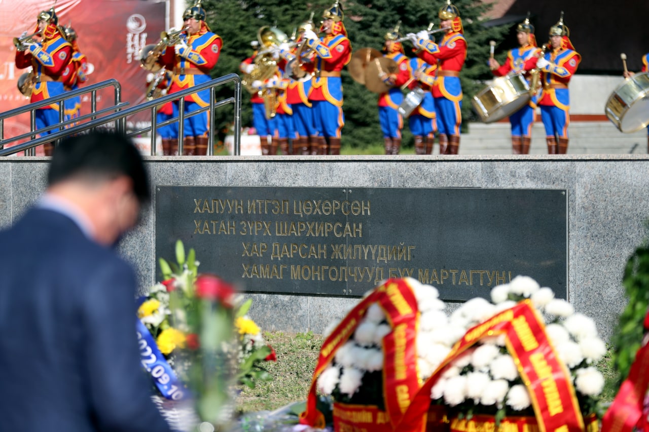 УИХ-ын дарга Г.Занданшатар, Ерөнхий сайд Л.Оюун-Эрдэнэ, УИХ-ын дэд дарга бөгөөд Цагаатгах ажлыг удирдан зохион байгуулах Улсын комиссын дарга С.Одонтуяа болон УИХ-ын гишүүд өнөөдөр (2022.09.10) хэлмэгсдийн хөшөөнд цэцэг өргөж хүндэтгэл үзүүллээ.