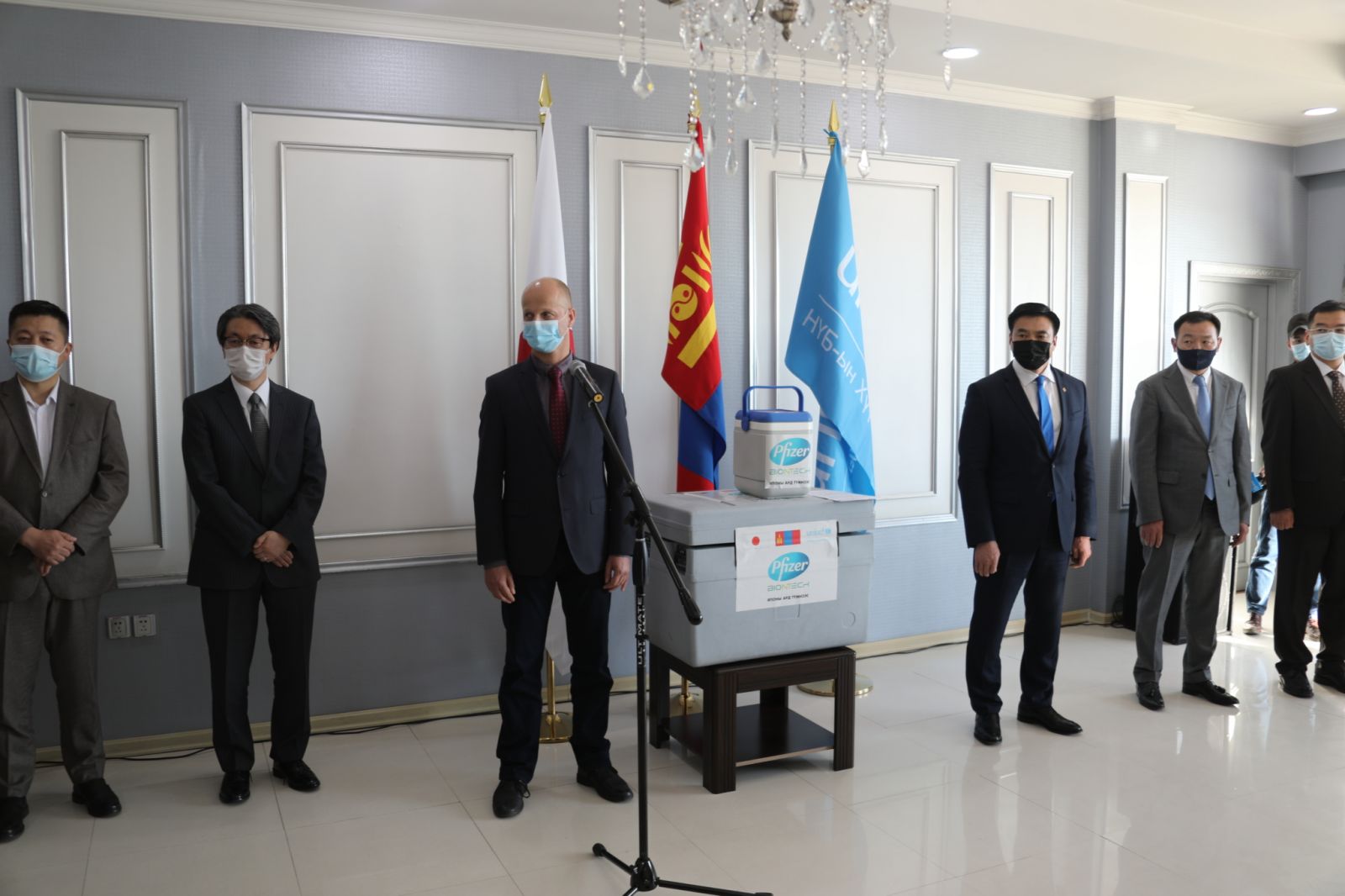Элчин сайд Кобаяши Хироюки “Pfizer вакцины 2.5 сая тунгаас Японы засгийн газар 2.35 саяыг худалдан авахад санхүүжилт олгож буйдаа таатай байна. Япон улс НҮБ-ын Хүүхдийн Сантай хамтарч дэмжлэг үзүүлж байгаа нь вакцинжуулалтын хөтөлбөрийг улам бэхжүүлж, Монгол Улсын нийгэм, эдийн засгийн үйл ажиллагааг сэргээхэд дэмжлэг болно гэж би итгэж байна” гэж хэлжээ.