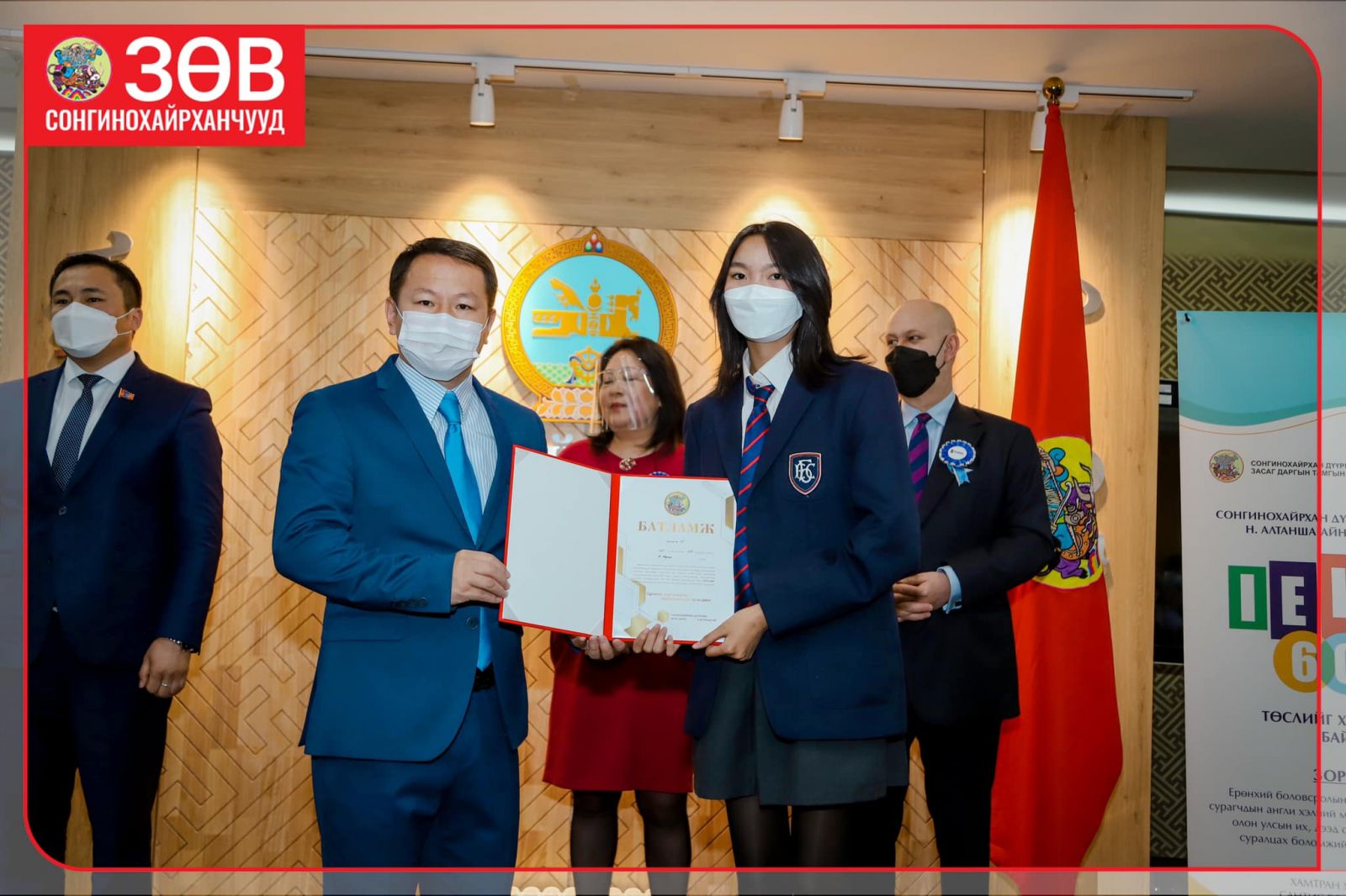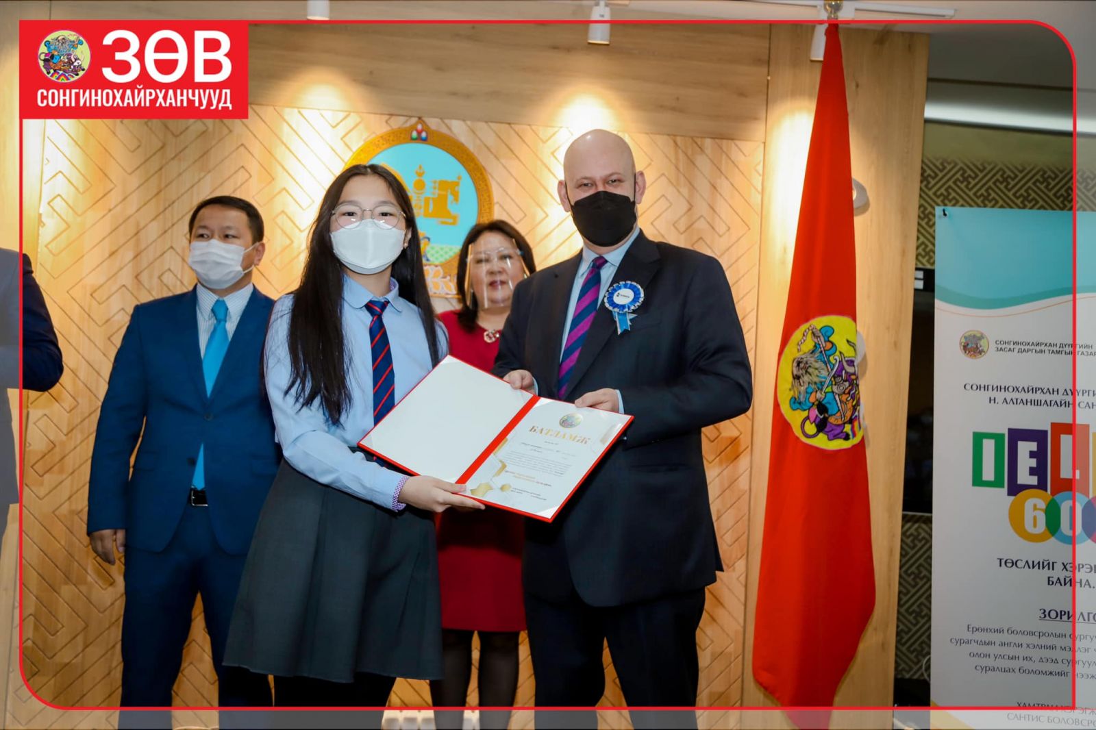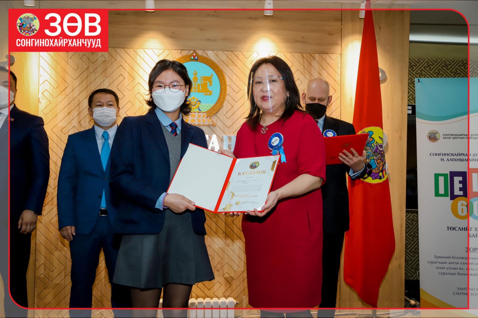 Сонгинохайрхан дүүргийн Засаг дарга Н.Алтаншагайн санаачлагаар хэрэгжүүлж буй “IELTS-600” төслийн хамтын ажиллагааны “Санамж бичиг”-т гарын үсэг зурах, сурагчдад батламж гардуулах ёслолын ажиллагаа өнөөдөр боллоо.