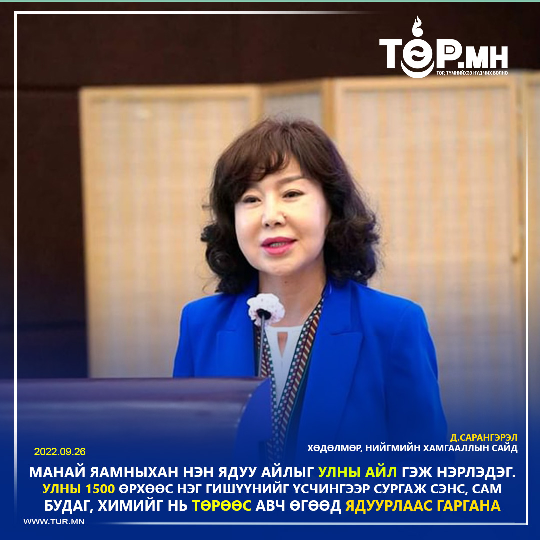 ХНХ-ийн сайд Д.Сарангэрэл өчигдөр /2022.09.26/ УИХ-ын Нийгмийн бодлогын байнгын хорооноос зохион байгуулсан хэлэлцүүлэг дээр “улны айлууд” хэмээн тодорхойлсон нь нийтийн эсэргүүцэлтэй тулгараад байсан юм.