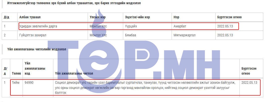 Монгол Улсын ерөнхий сайд Л.Оюун-Эрдэнэ таны хатуу чанд сахилга бат, хариуцлагатай байх тухай хэлсэн үг хатаж амжаагүй байхад Засгийн газрын танхимын сайд чинь намынхаа залуусын төрийн бус байгууллагад давуу эрх олгож, тэтгэж сууна!!! Энэ таны хэлээд буй шударга ёс гэж үү?