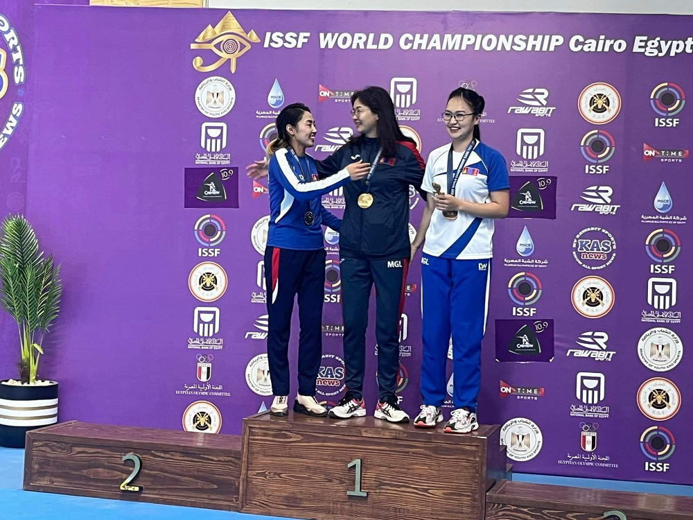 Египетийн Каир хотод буудлага спортын насанд хүрэгчдийн 53 дахь удаагийн ДАШТ энэ өдрүүдэд ид болж байна. Өнөөдөр тэмцээний эмэгтэйчүүдийн стандарт гар бууны 25 метрийн дасгалд Монголын гурван тамирчин медалийн тавцанд гарсан бөгөөд Ц.Мөнхзул алтан медаль хүртэж, төрийн дууллаа эгшиглүүлэв.