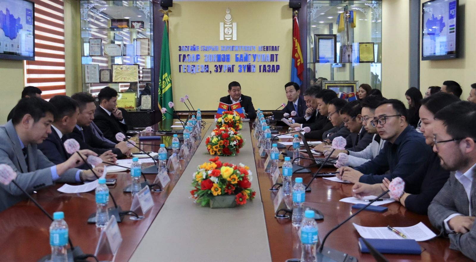 Уулзалтаар Газар болон үл хөдлөх хөрөнгийн хаягжуулалт, түүний цахим системийг хэрэглээнд нэвтрүүлэхэд тулгамдаж буй асуудал, төрийн байгууллагуудын мэдээллийг нэгтгэж солилцох үйл явцыг түргэн шуурхай гүйцэтгэх, төрийн байгууллагуудын мэдээллийн давхцалыг арилгах асуудлуудыг авч хэлэлцлээ.