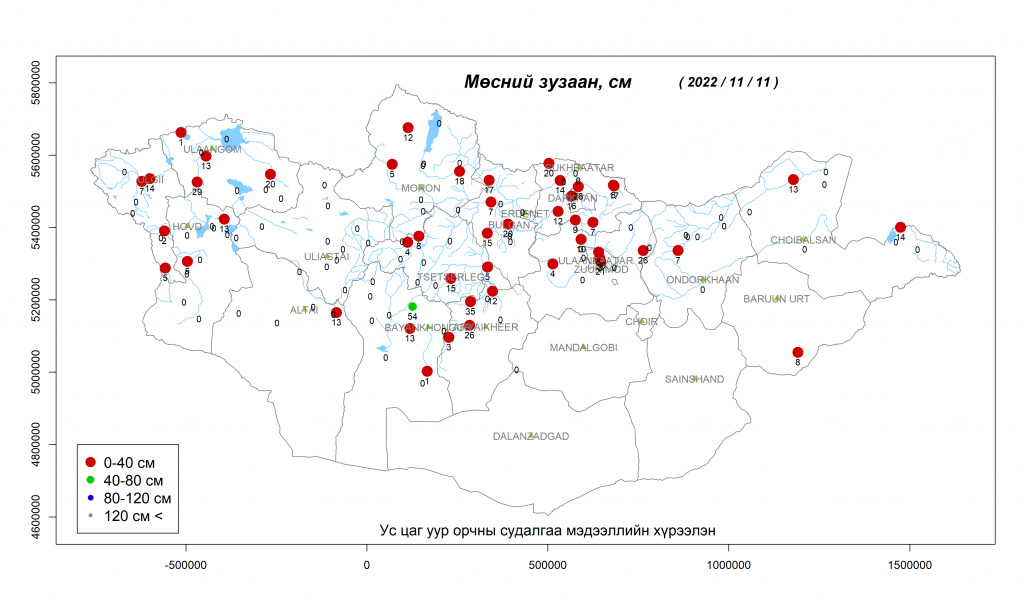 Цаг уурын байгууллагын ирүүлсэн мэдээллээр энэ сарын 11-ний өдрийн байдлаар манай орны ихэнх гол мөрөнд мөсний үзэгдэл идэвхижиж эхэлсэн бөгөөд зарим жижиг болон дунд зэргийг голуудад 15-25 см зузаан мөсөн бүрхүүл тогтож, мөсний зузаан гол мөрний нийт уртын дагууд харилцан адилгүй байна.