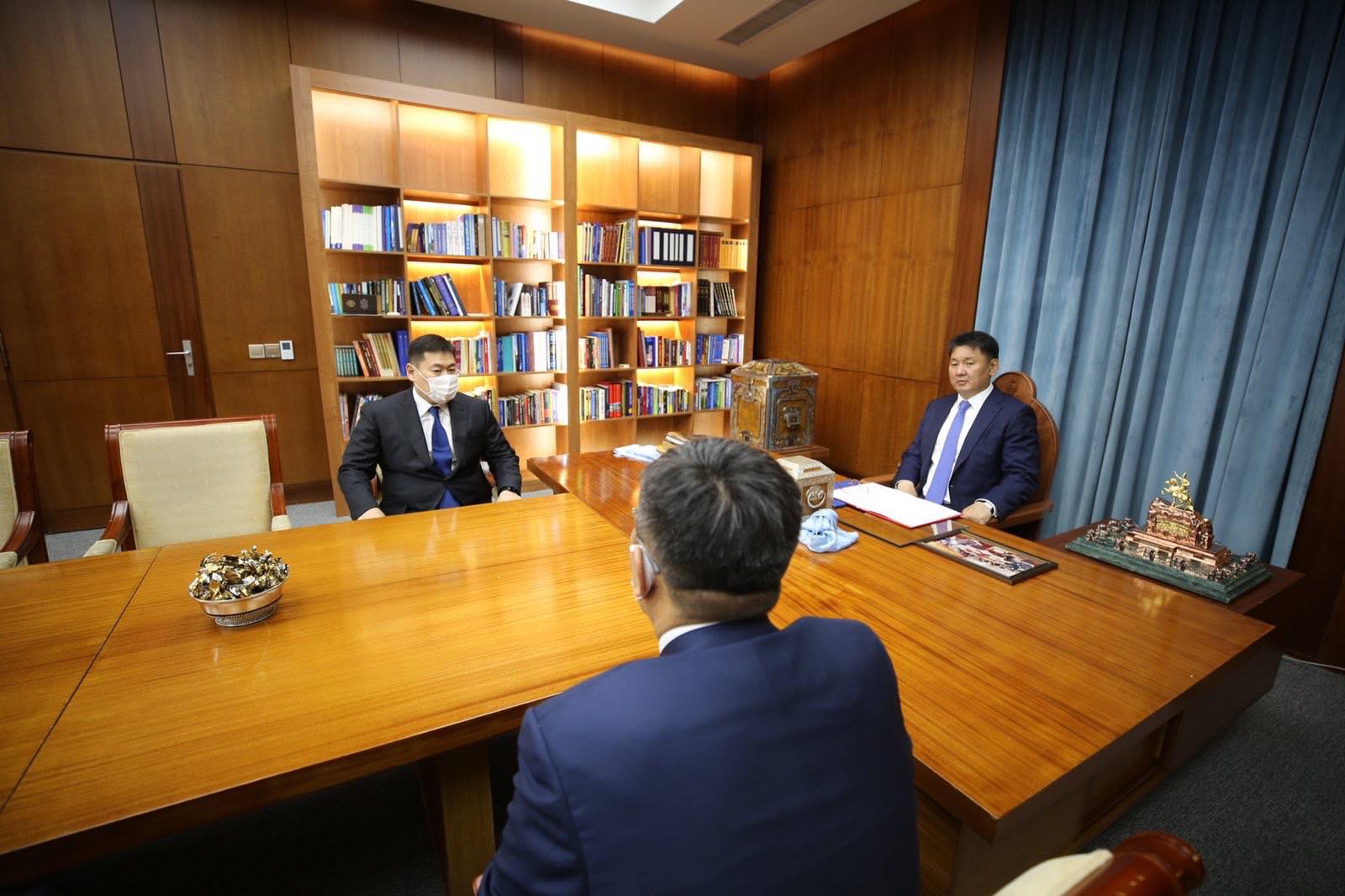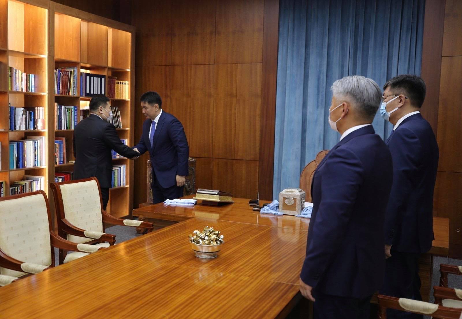 Монгол Улсын Ерөнхийлөгч У.Хүрэлсүхэд өнөөдөр УИХ-ын дарга Г.Занданшатар, Монгол Улсын Ерөнхий сайд Л.Оюун-Эрдэнэ нар бараалхаж баяр хүргэн, амжилт хүсэв.