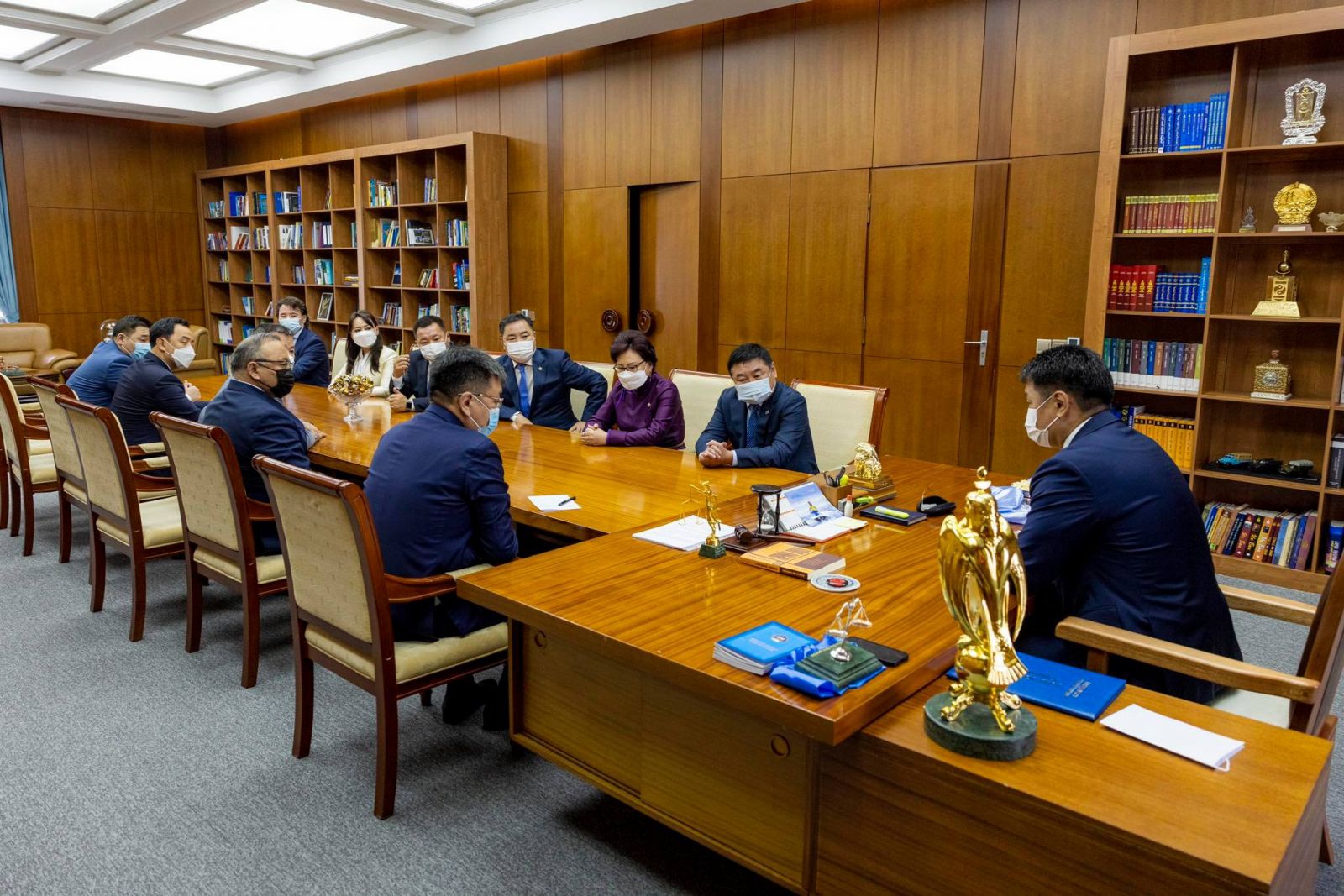 Уулзалтын эхэнд УИХ-ын гишүүн, УИХ дахь Ардчилсан намын бүлгийн дарга Д.Ганбат зургаан жилээр ажиллахаар сонгогдсон Монгол Улсын Ерөнхийлөгч У.Хүрэлсүхэд ажлын өндөр амжилт хүсэж, УИХ дахь Ардчилсан намын бүлэг Монгол Улсын Ерөнхийлөгчийг дэмжин ажиллана гэдгийг хэллээ.