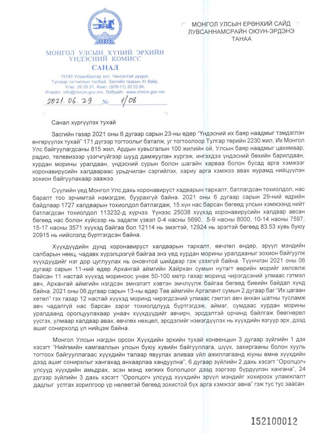 Хүний эрхийн Үндэсний Комиссоос энэ оны Үндэсний их баяр наадмын хурдан морины уралдааныг цуцлах, хойшлуулах санал, зөвлөмжийг Засгийн газар хүргүүлжээ. Учир нь 2021 оны зургаадугаар сарын 11-нд Архангай аймгийн Хайрхан суманд өөрийн морийг хөлсөлж байсан 11 настай хүүхэд мориноос унаж, 50-100 метр газар чирэгдэж, бэртэл гэмтэл авсан. Түүнчлэн цар тахалд хүүхдүүд олноор өртөж, өвчлөл өндөр байгаа учир ийнхүү цуцлахыг хүссэн байна.