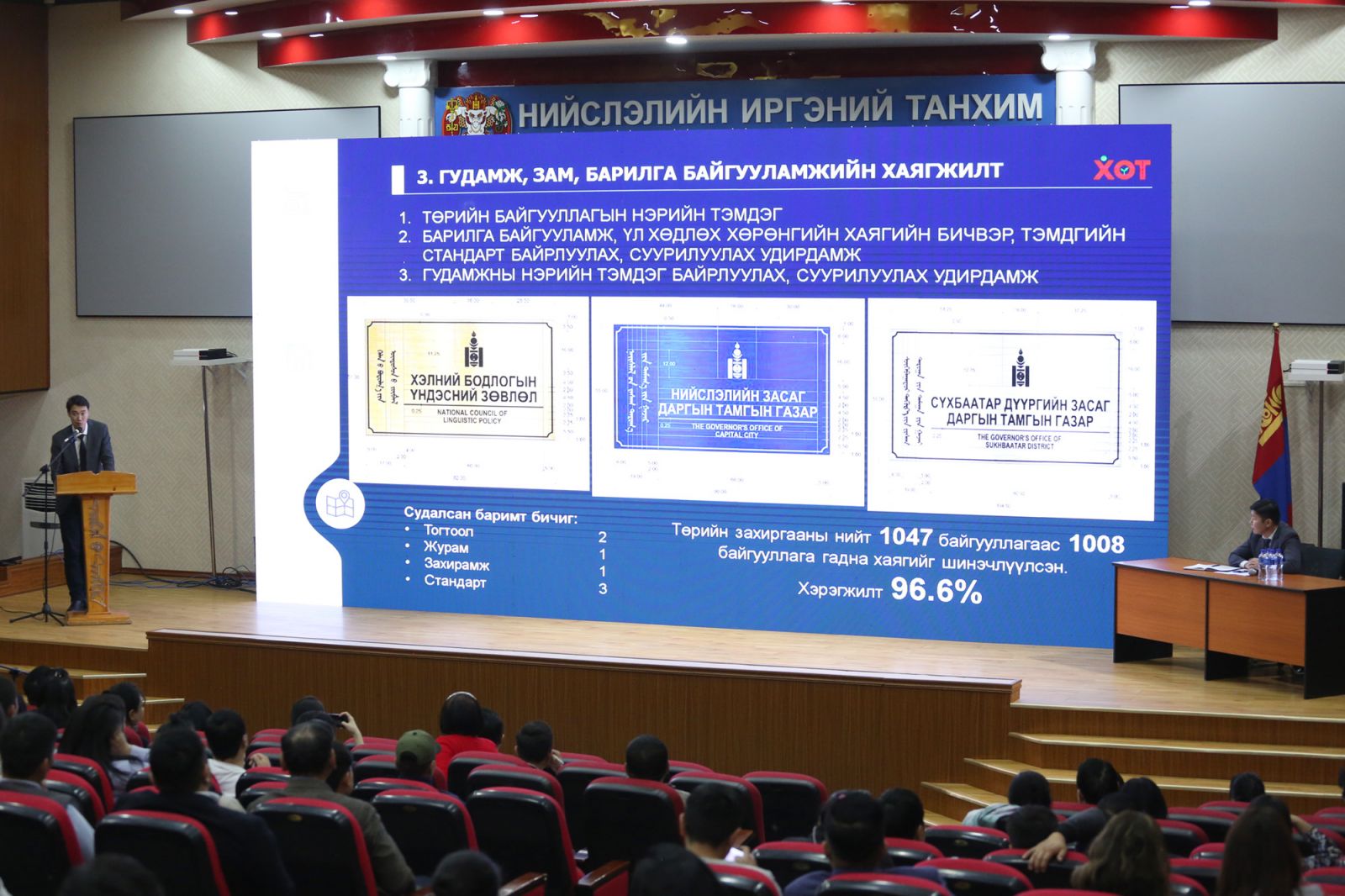Хотын стандарт, хяналтын газрын дарга С.Төмөрдулам “Улаанбаатар хотын өнгө үзэмж, төлөвлөлтөөс эхлээд иргэдийн амьдрах орчин, зам, нийтийн тээвэр гээд бүхий л хүрээнд нөлөөлөх энэхүү стандартуудын төслийг хэлэлцүүлж байна. Энд хэлэлцэж буй төслүүдэд иргэд, олон нийт, байгууллагуудын санал, шүүмжлэл тусаж байж бүгдэд ээлтэй, хэрэгцээ шаардлагад нь нийцсэн, хэрэгжүүлэхэд хялбар баримт бичиг боловсруулна. Цаашлаад баталсан стандартуудыг хэрэгжүүлэх, хяналт тавихад ч иргэд, олон нийтийн оролцоо чухал юм” хэмээв.