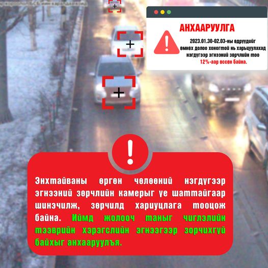 Тэгвэл өнөөдөр ЗХУТ-ийн өгсөн мэдээллээр нэгдүгээр сарын 30-наас хоёрдугаар сарын 3-ны хооронд 1-р эгнээгээр зорчсон зөрчил 12 хувиар өссөн байна.