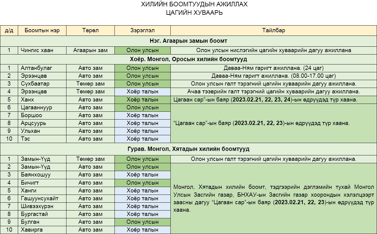 Цагаан сарын баярын Монгол, Хятадын хилийн авто замын бүх боомт, Монгол, Оросын Алтанбулаг, Эрээнцаваас бусад боомт амрах хуваарьтай байна.