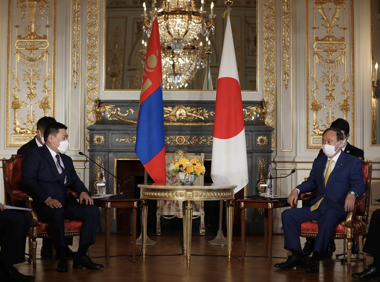 аян дэлхийн улс орнууд нэг гэр бүл болохыг харуулж байдаг Олимпын наадмыг цар тахлын хүнд нөхцөл байдалд Япон Улсын Засгийн газар амжилттай зохион байгуулж байгаад баяр хүргэж, энэ удаагийн Олимпын наадам хүн төрөлхтөн цар тахлыг амжилттай даван туулсны бэлгэ тэмдэг болон түүхэнд үлдэнэ гэдэгт итгэлтэй байгаагаа илэрхийлэв. Ерөнхий сайд Ё.Сүга Олимпын наадмыг зохион байгуулах түүхэн сорилттой үед Монгол Улсын Ерөнхий сайд хүрэлцэн ирсэнд, мөн гадаад улс оронд хийж буй анхны айлчлалаа Япон Улсаас эхлүүлсэнд баяртай байгаагаа илэрхийлэв.