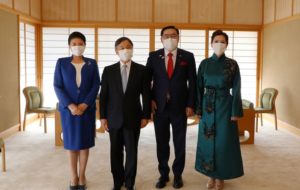 Монгол Улсын Их Хурлын дарга Г.Занданшатар, гэргий Г.Отгонгэрэлийн хамт Япон Улсын Цог Жавхлант Эзэн Хаан Нарүхито, Эрхэм Дээд Хатан Масако нарт 2023 оны гуравдугаар сарын 03-ны өдөр Эзэн Хааны ордонд бараалхав.