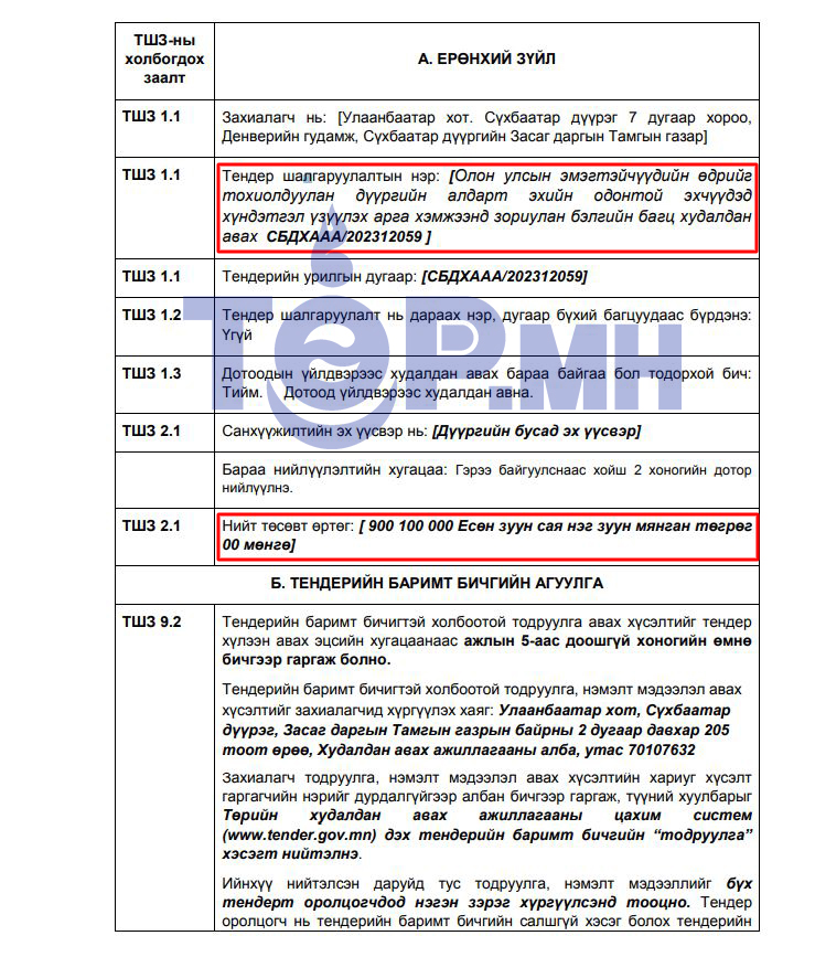 Сар шинийн баярын өмнө дүүргийнхээ ахмадуудад хэвийн боов, еэвэн зэрэг тавгийн идээ бэлэглэхэд 1.4 тэрбум төгрөгийн "ТЕНДЕР" зарласан нь "шүүмжлэл"-д өртсөнөөр тендерээ цуцалсан юм.