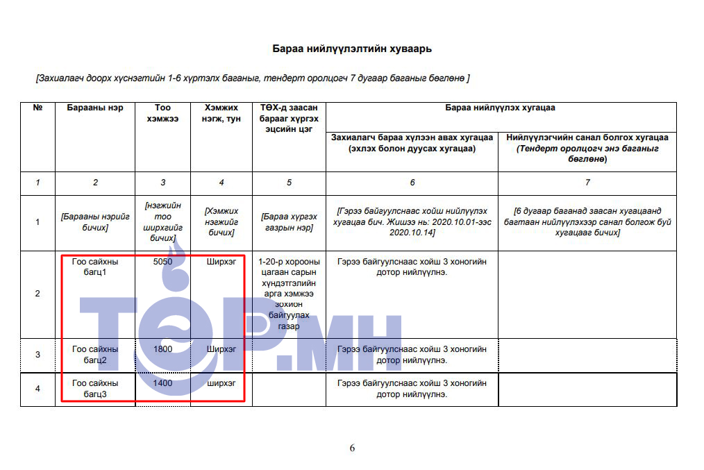 Сүүн шингэн, тоник -12 сар, өдөр, шөнийн тос – 24 сар маск гэсэн бүтээгдэхүүнүүд багтжээ. Гэвч тэрбээр дээрх "ТЕНДЕР"-ээ цуцалж, хүчингүй болгожээ.